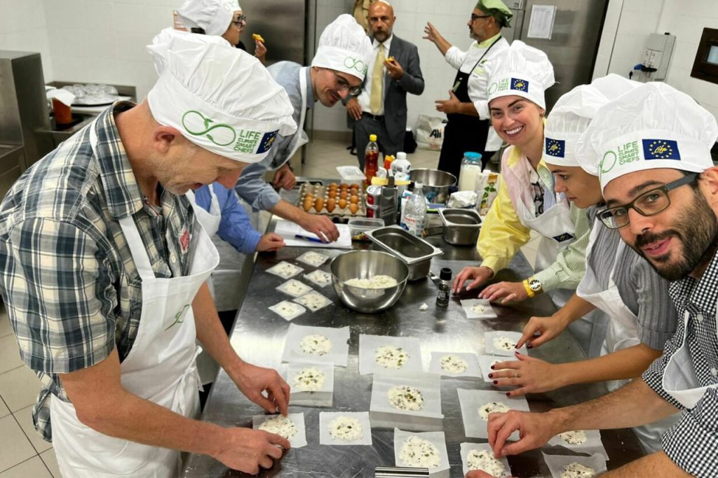 Il progetto europeo triennale “Life Climate Smart Chefs” si propone di formare chef e professionisti del settore ristorativo in Europa per promuovere diete a basse emissioni, nutrienti ed accessibili, contribuendo a ridurre l’impatto ambientale e combattendo lo spreco alimentare. L’obiettivo principale è favorire un cambiamento nei sistemi alimentari e nelle abitudini alimentari delle persone, anche quando mangiano fuori casa, rendendo gli chef promotori attivi di una dieta sostenibile. Il progetto prevede anche la creazione di un network europeo di associazioni di chef, lo sviluppo di un tool digitale chiamato “FoodPrint” per la progettazione di menu sostenibili e la realizzazione di un corso di alta formazione.